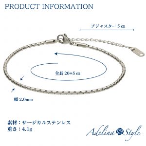 ![[Adelina Style] アンクレット レディース 316L サージカルステンレス シンプル 細身 チェーン 幅2.0mm 全長20+5㎝ 軽量 ロジウムコーティング 金属アレルギー対応 (typeJ) - 画像 (5)](https://adelina.style/wp-content/uploads/fym01-10_6.jpg)
