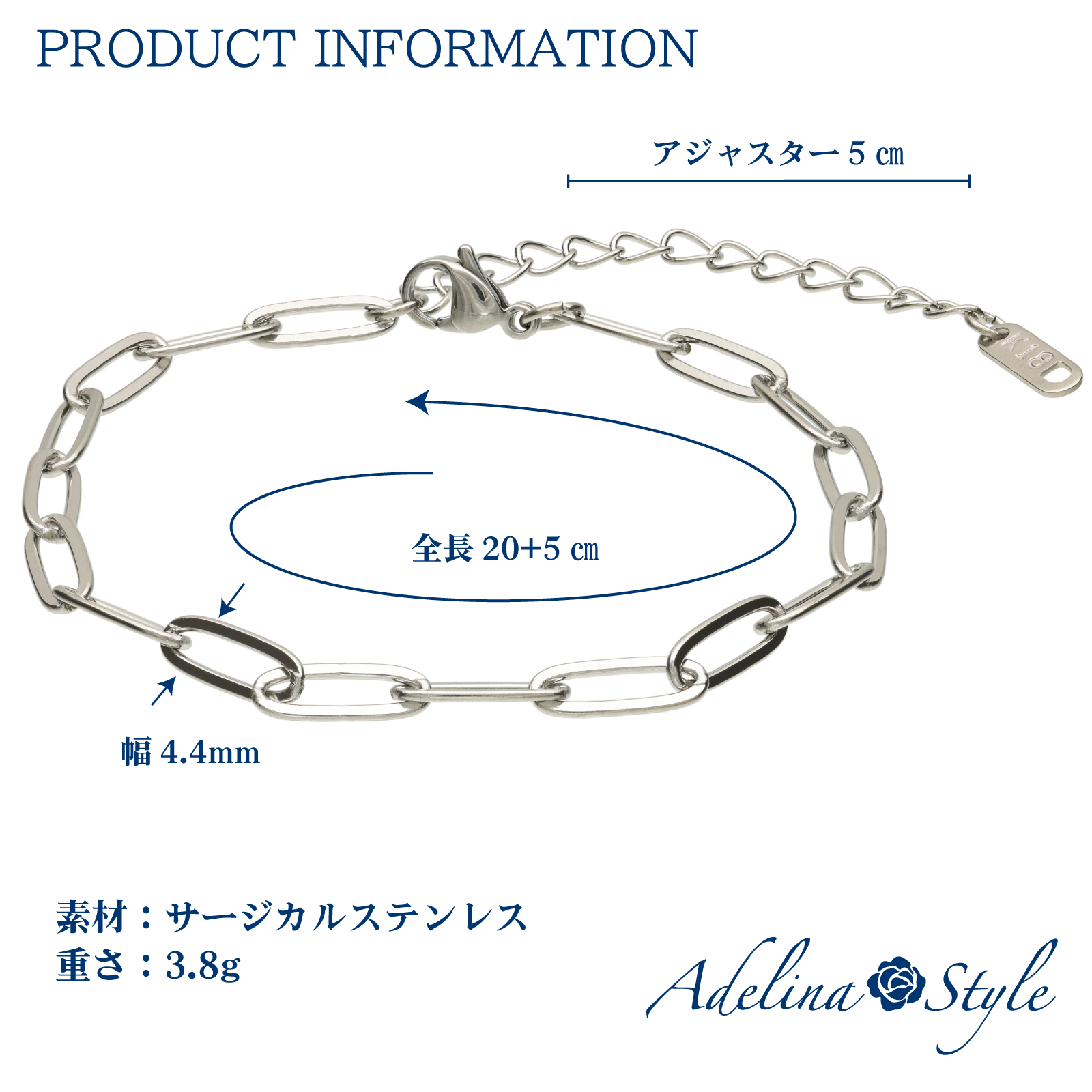 ![[Adelina Style] アンクレット レディース 316L サージカルステンレス シンプル ペーパークリップチェーン 幅2.5mm 全長20+5㎝ 軽量 ロジウムコーティング 金属アレルギー対応 (typeK)](https://adelina.style/wp-content/uploads/fym01-11_1.jpg)