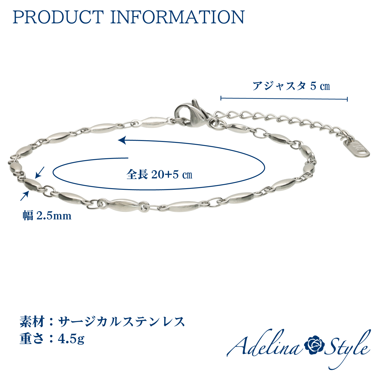![[Adelina Style] アンクレット レディース 316L サージカルステンレス シンプル 楕円チェーン 幅2.5mm 全長20+5㎝ 軽量 ロジウムコーティング 金属アレルギー対応 (typeD) - 画像 (5)](https://adelina.style/wp-content/uploads/fym01-04_6.jpg)