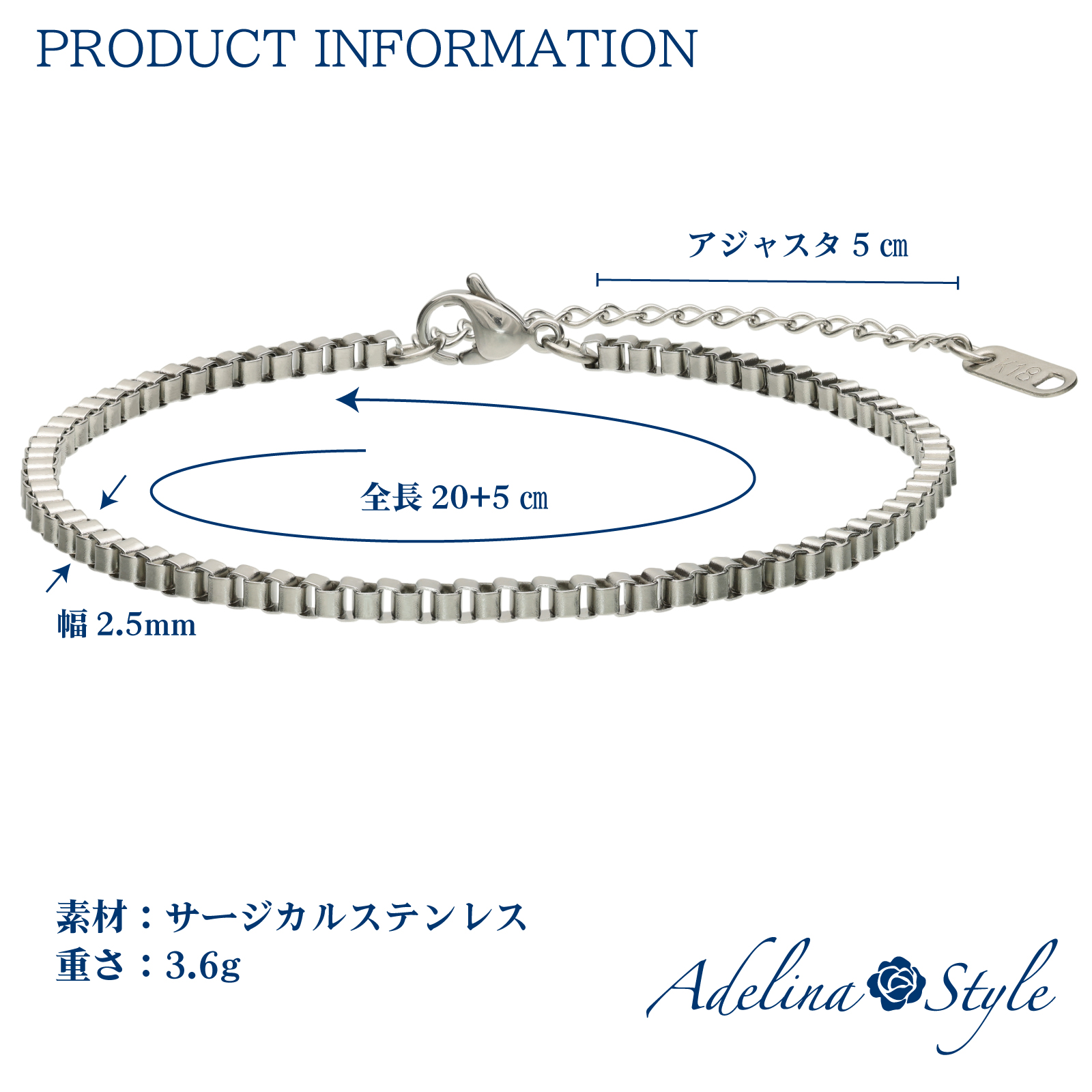 ![[Adelina Style] アンクレット レディース 316L サージカルステンレス シンプル ボックスチェーン 幅2.5mm 全長20+5㎝ 軽量 ロジウムコーティング 金属アレルギー対応 (typeE) - 画像 (5)](https://adelina.style/wp-content/uploads/fym01-05_6.jpg)