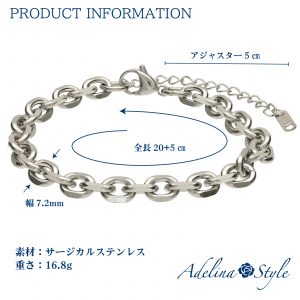 ![[Adelina Style] アンクレット レディース 316L サージカルステンレス シンプル あずきチェーン 幅7.2mm 全長20+5㎝ 軽量 ロジウムコーティング 金属アレルギー対応 (typeG) - 画像 (2)](https://adelina.style/wp-content/uploads/fym01-07_2.jpg)