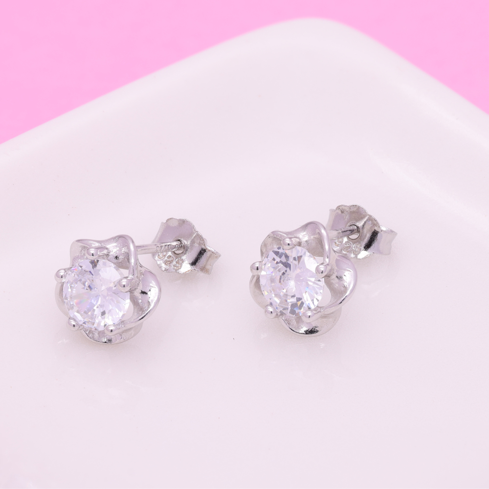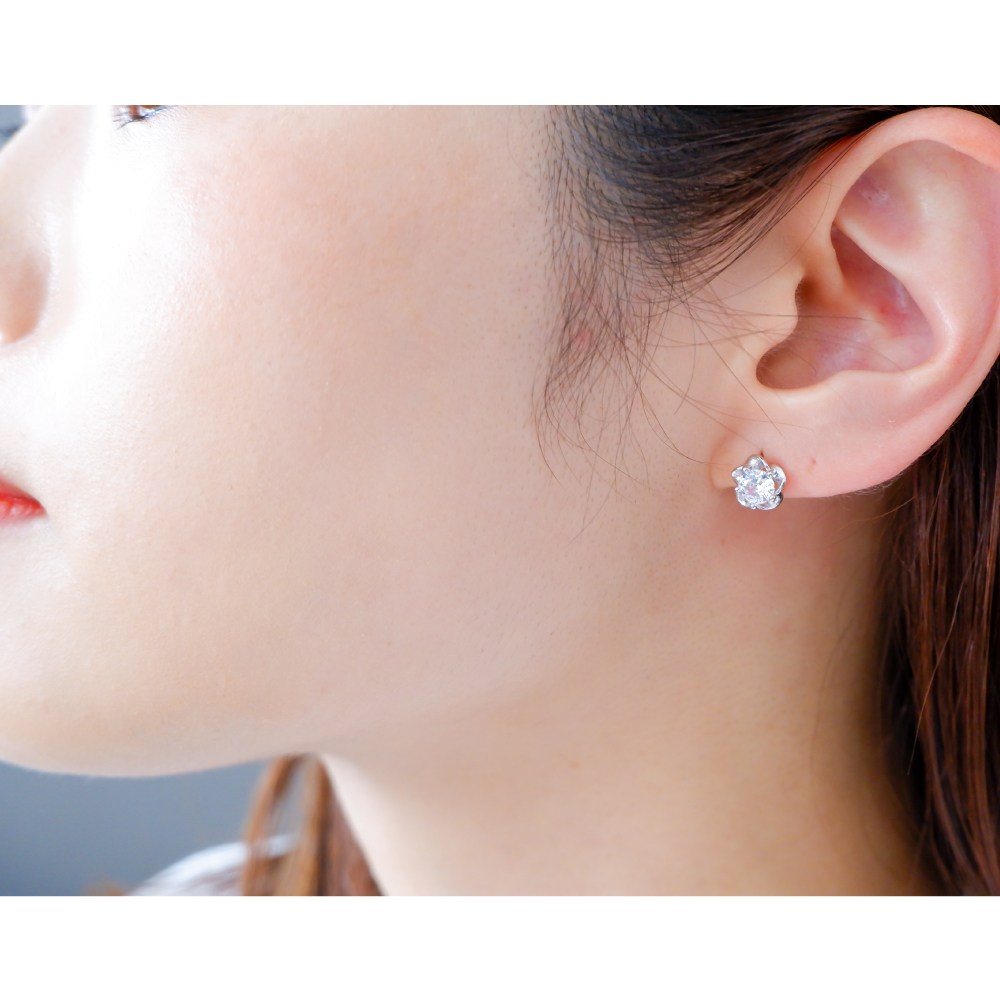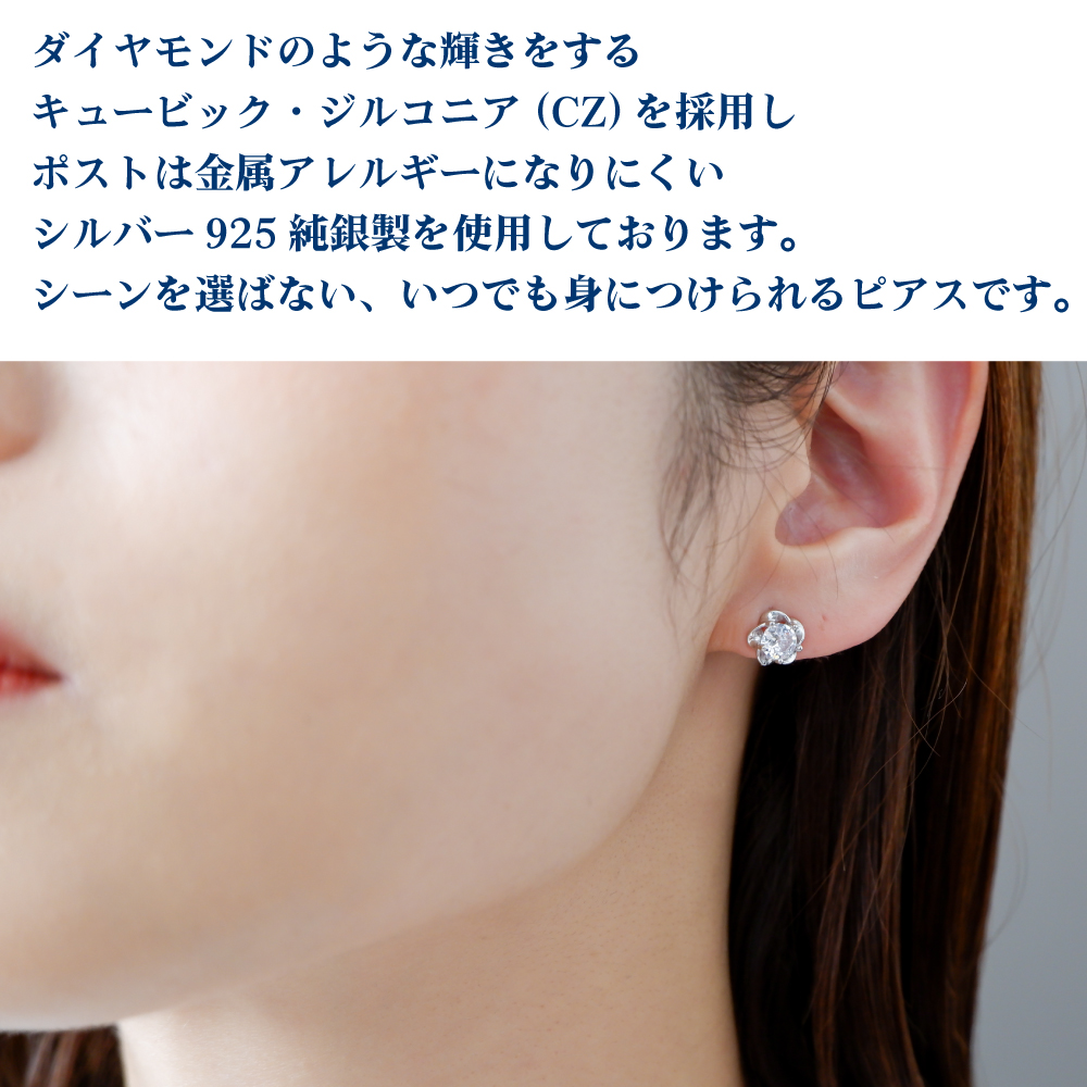 高輝度ジルコニアの美しい輝きと5つ葉クローバーのラインが上品でエレガントな印象です。ピアス本体には925スターリングシルバーを使用しており、高級感あるデザインとなっています。日常使いから特別なシーンまで幅広く使えるアクセサリーです。