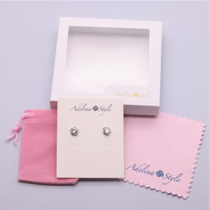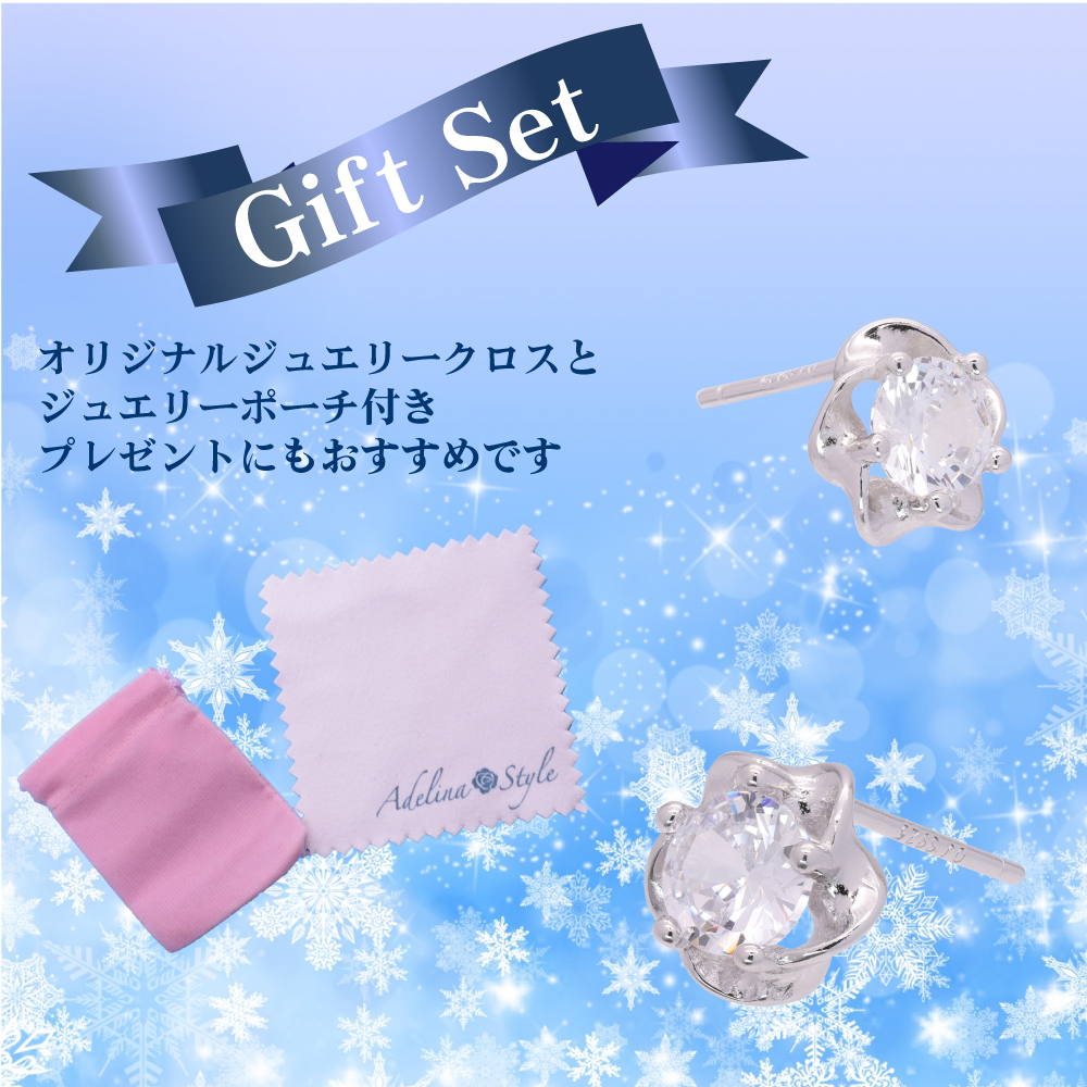 シルバー製品は汚れを放置すると酸化して黒ずんでしまうため、装着後付属のジュエリークロスで汚れをふき取ってください。また、長い間使用しない場合は付属のジュエリーポーチで保管してください。ちょっとしたひと手間で輝きを失わず長くピアスをご利用いただけます。