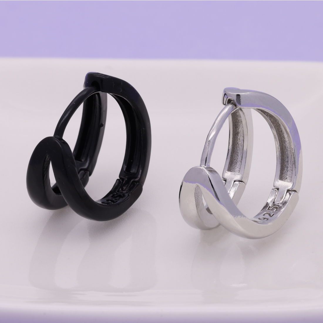 立体的なクロスデザインが目を引くシルバー925製のリングピアス。耳元に洗練された存在感を与えメンズ・レディース問わずスタイリッシュに使えるユニセックスアクセサリーです。光沢感のあるシルバーとシックなブラックの2色展開でシーンやコーディネートに合わせて選べます。
