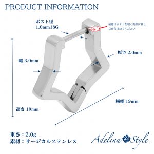 ![[Adelina Style] スター 星 ピアス 1ペア 人気 つけっぱなし メンズ レディース フープピアス サージカルステンレス 金属アレルギー対応 男女兼用 - 画像 (7)](https://adelina.style/wp-content/uploads/q-pb24-5_7.jpg)