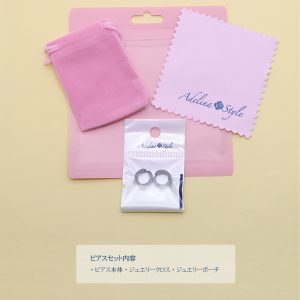 着用後、付属のジュエリークロスで汚れをふき取ってください。また、長い間使用しない場合は、付属のジュエリーポーチで保管してください。ちょっとしたひと手間で輝きを失わず長くピアスをご利用いただけます。