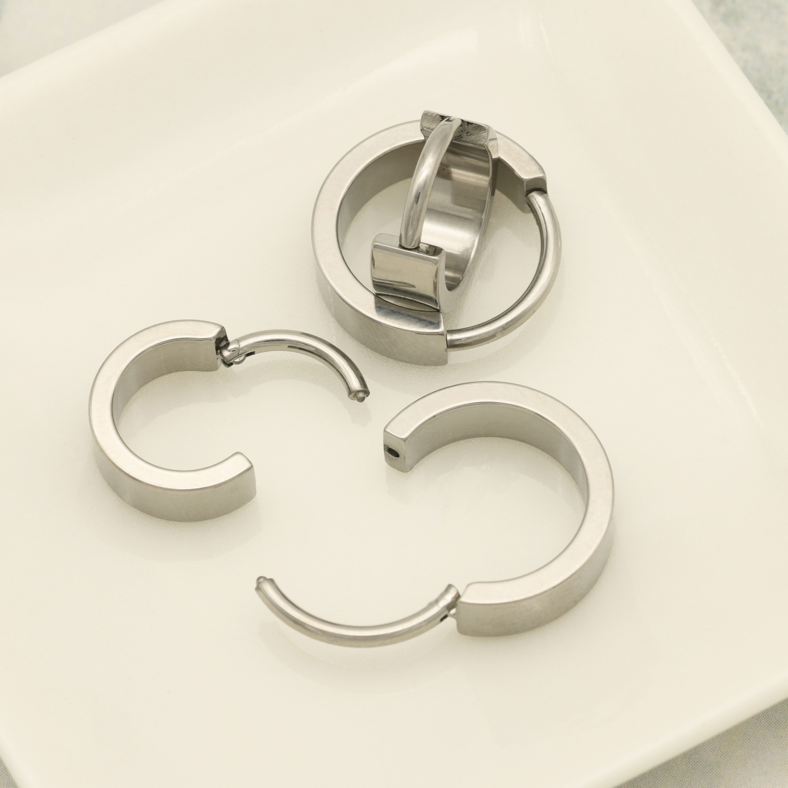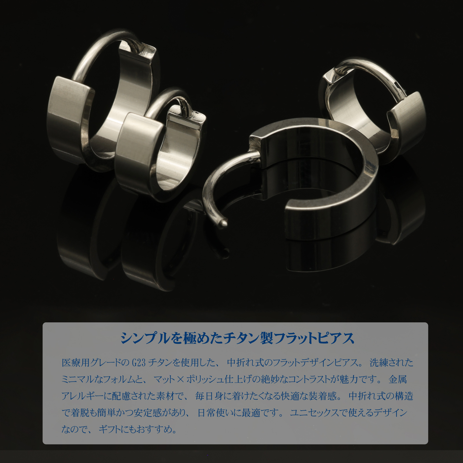 ミニマルでシックな印象のフラットフープピアスはメンズ・レディースともにコーディネートしやすい万能デザイン。ストリートからモードまでさまざまなスタイルに調和します。ペアでの使用やシェアにもおすすめ。