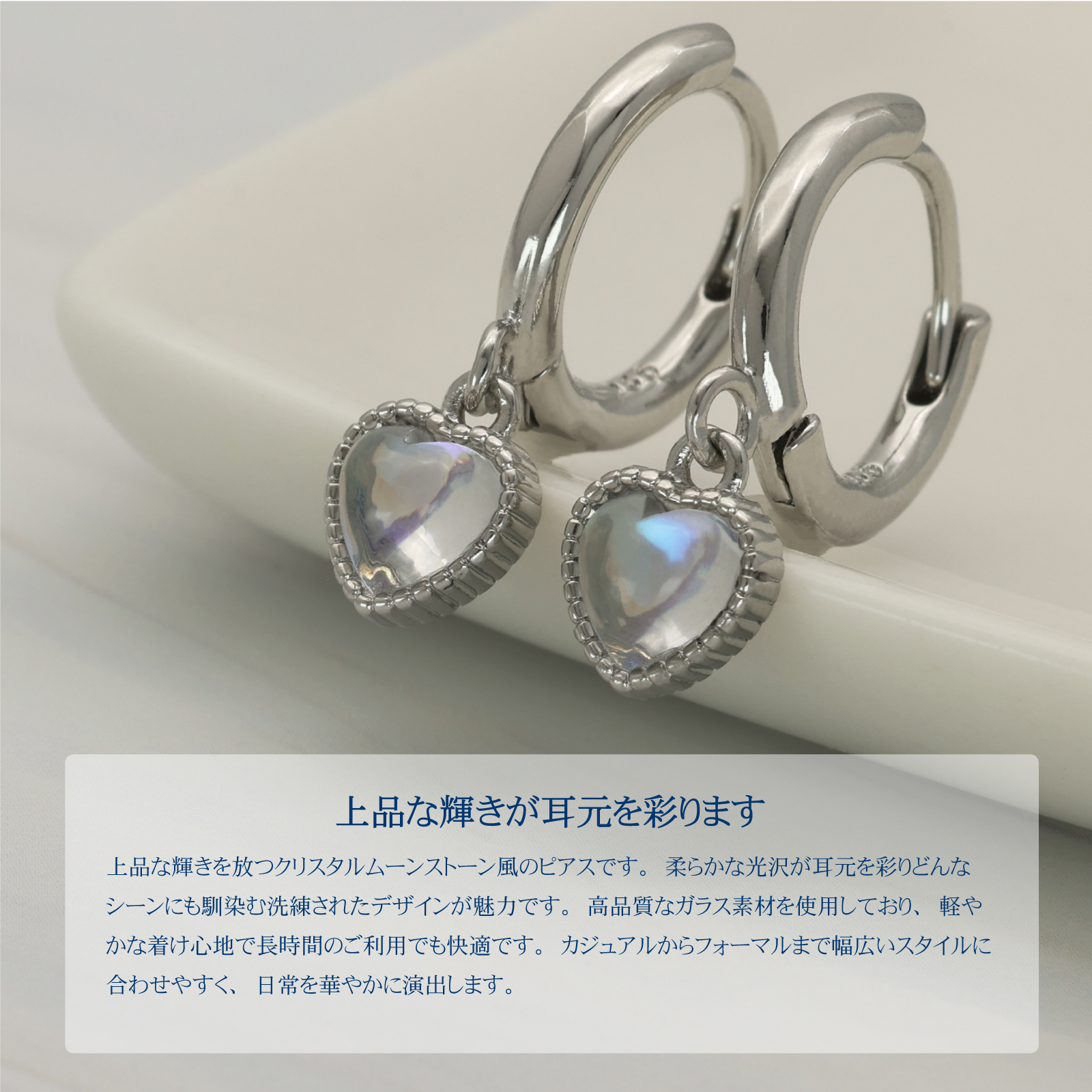 ✅上品な輝きを放つクリスタルムーンストーン風のピアスです。柔らかな光沢が耳元を彩りどんなシーンにも馴染む洗練されたデザインが魅力です。軽やかな着け心地で長時間のご利用でも快適です。カジュアルからフォーマルまで幅広いスタイルに合わせやすく日常を華やかに演出します。