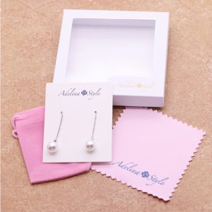 シルバー製品は汚れを放置すると酸化して黒ずんでしまうため、装着後付属のジュエリークロスで汚れをふき取ってください。また、長い間使用しない場合は付属のジュエリーポーチで保管してください。ちょっとしたひと手間で輝きを失わず長くピアスをご利用いただけます。