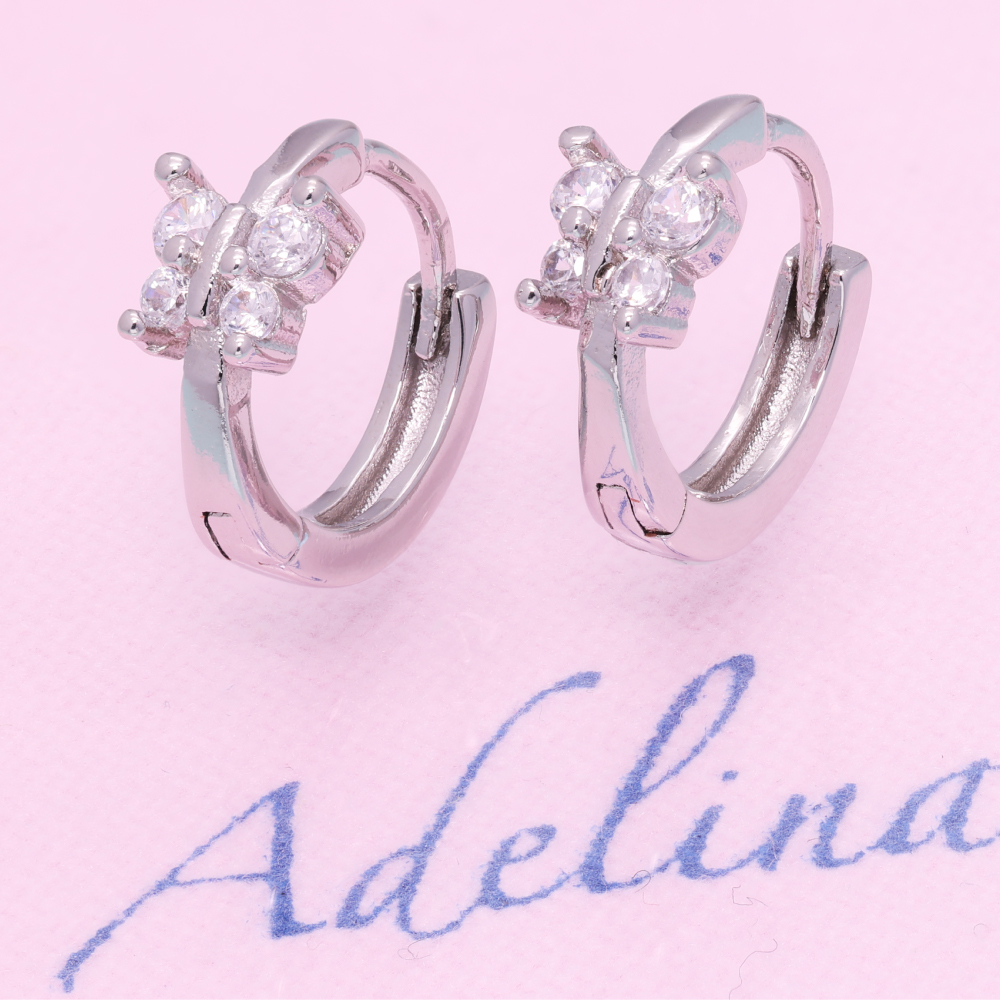 軽やかに舞う蝶をイメージしたバタフライモチーフのリングピアス。4粒の高輝度キュービックジルコニアが蝶の羽根を表現し立体感のある美しいフォルムに仕上がっています。