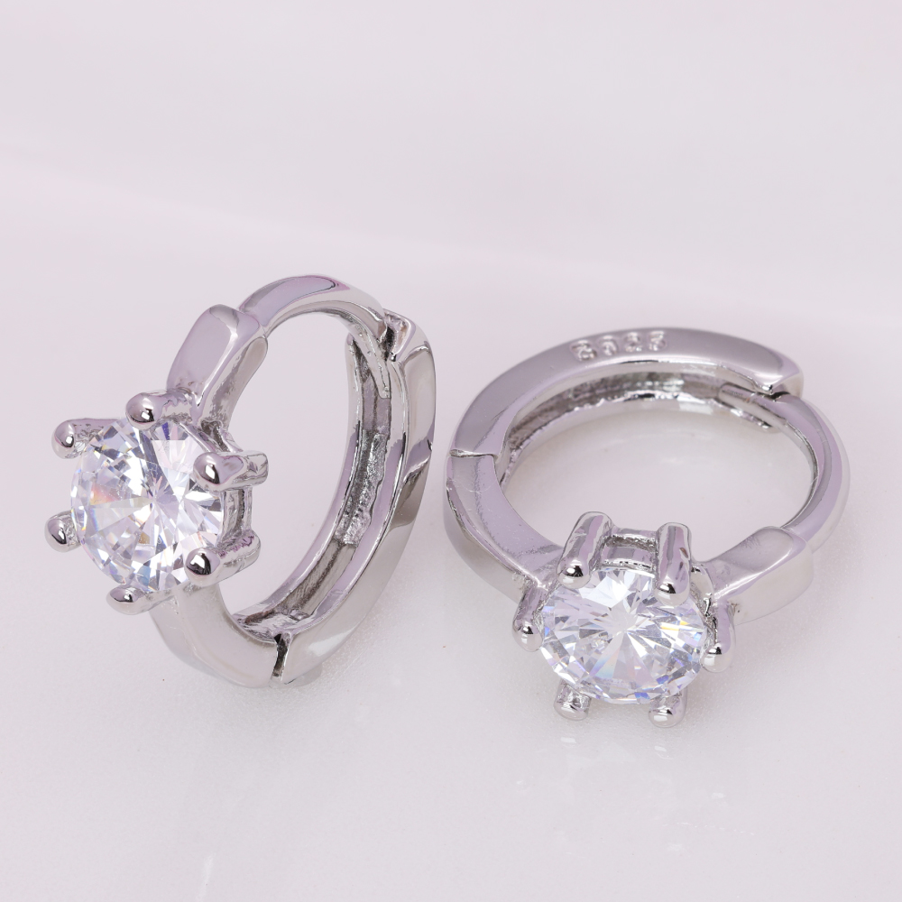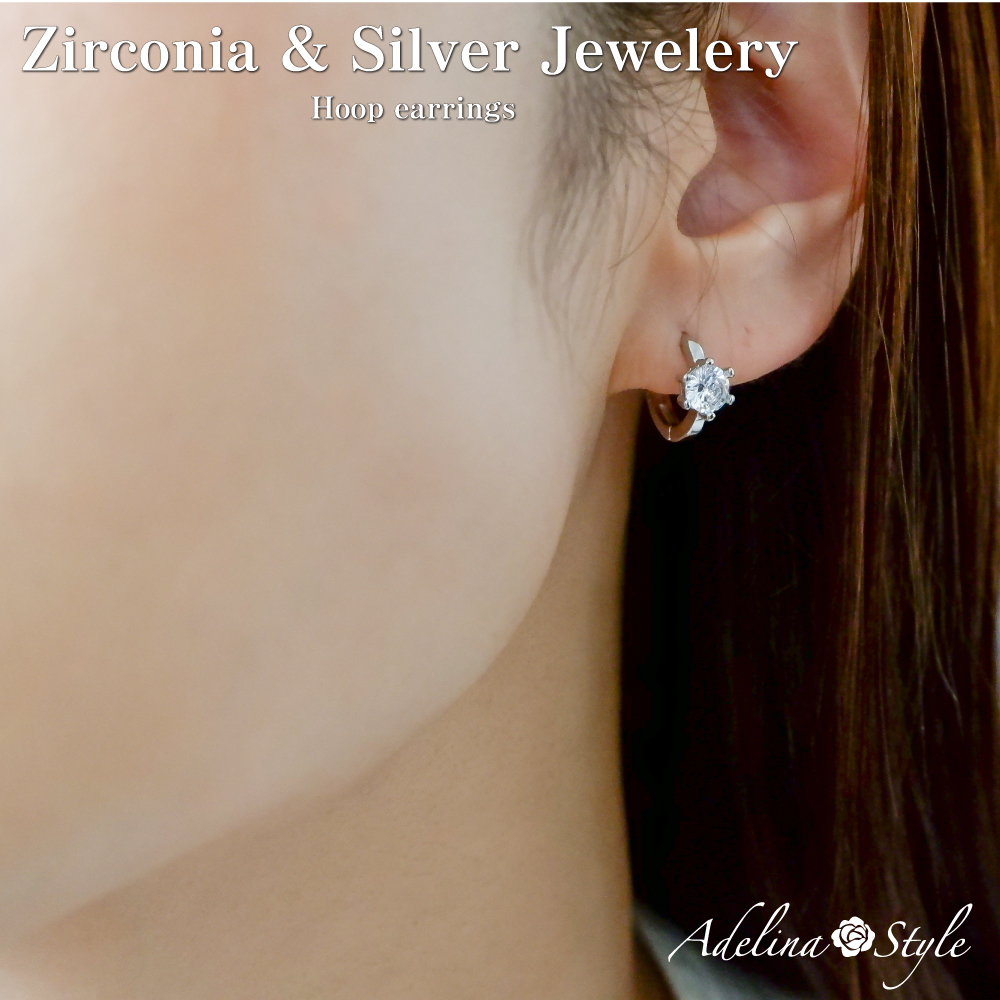 ひときわ目を引くセンターストーンが輝く、高輝度キュービックジルコニアを使用したリングピアス。小さめピアスながらも耳元でしっかりとした存在感を放ちます。【素材】925純銀製/高輝度キュービックジルコニア