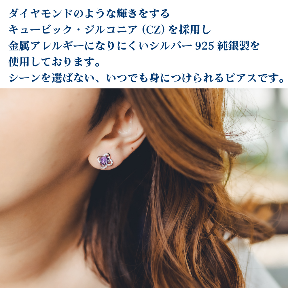 AAAAAランクの高輝度ジルコニアを使用しており、細部までこだわった美しい仕上がりになっています。ピアス本体には925スターリングシルバーを使用しており、高級感あるデザインとなっています。日常使いからパーティーシーンまで幅広く使える上品なアクセサリーです。