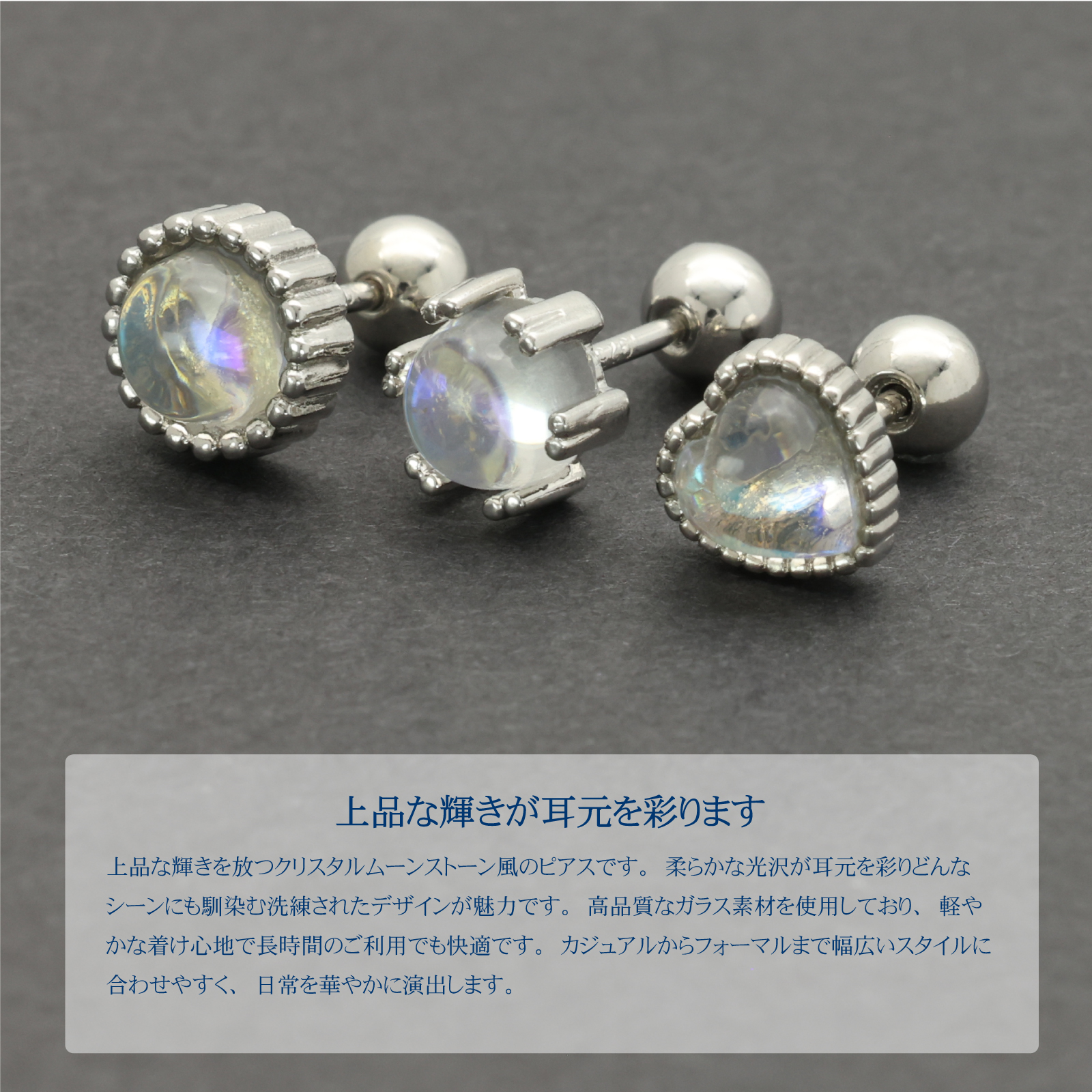 ✅上品な輝きを放つクリスタルムーンストーン風のピアスです。柔らかな光沢が耳元を彩りどんなシーンにも馴染む洗練されたデザインが魅力です。軽やかな着け心地で長時間のご利用でも快適です。カジュアルからフォーマルまで幅広いスタイルに合わせやすく日常を華やかに演出します。