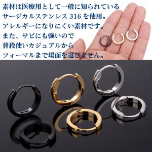✅【金属アレルギー対応】ステンレスフープピアスは医療用として一般に知られているサージカルステンレスを使用しております。アレルギーを引き起こしにくい素材ですのでデリケートな肌質の方にもおすすめです。傷がつきにくくサビにくいので汗や皮脂などで汚れても酸化しないためアレルギーの原因となる金属が溶け出さず肌荒れがおきにくくなっております。