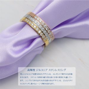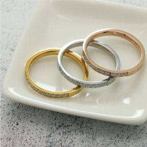 “ジルコニア サージカルステンレス ファッションリング ハーフエタニティリング 細身