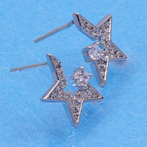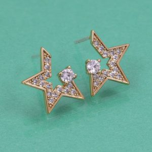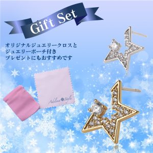 美しい星型にジルコニアを敷き詰めた洗練されたデザインが特徴です。高級感あふれる輝きを楽しむことができるため、贈り物にもおすすめです。ボディーは美し光沢の金メッキでポストはスターリングシルバーを採用し耳に優しい素材となっています。