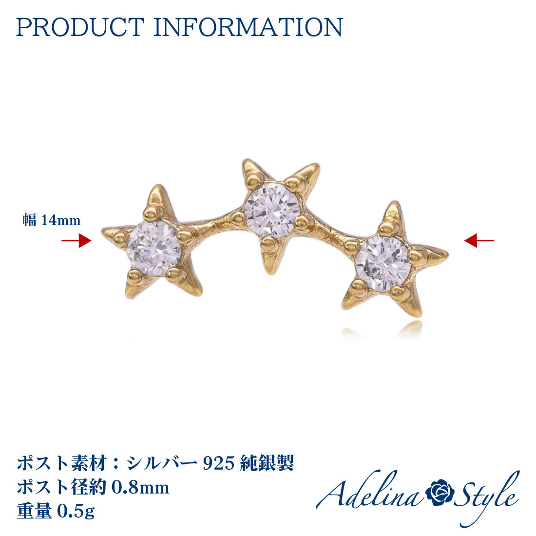 ![[Adelina Style] 星 スター ピアス ジルコニア スタッド ピアス 星ピアス低刺激性 レディース S925純銀製 両耳用 - 画像 (4)](https://adelina.style/wp-content/uploads/pj019-02_3.jpg)