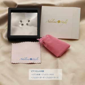 [ピアスセット内容:ピアス本体・ジュエリークロス、ジュエリーポーチ、ジュエリーケース]
