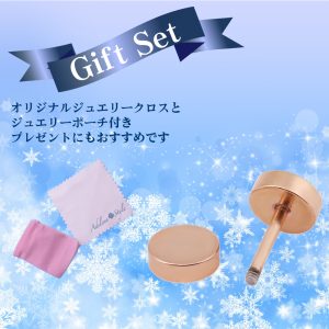 着用後付属のジュエリークロスで汚れをふき取ってください。また、長い間使用しない場合は付属のジュエリーポーチで保管してください。ちょっとしたひと手間で輝きを失わず長くピアスをご利用いただけます。